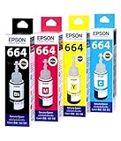 #1: Original Epson Ink All Colors (T6641-B,T6642-C,T6643-M,T6644-Y) 70 Ml Each For L100/L110/L200/L210/L300/L350/L355/L550